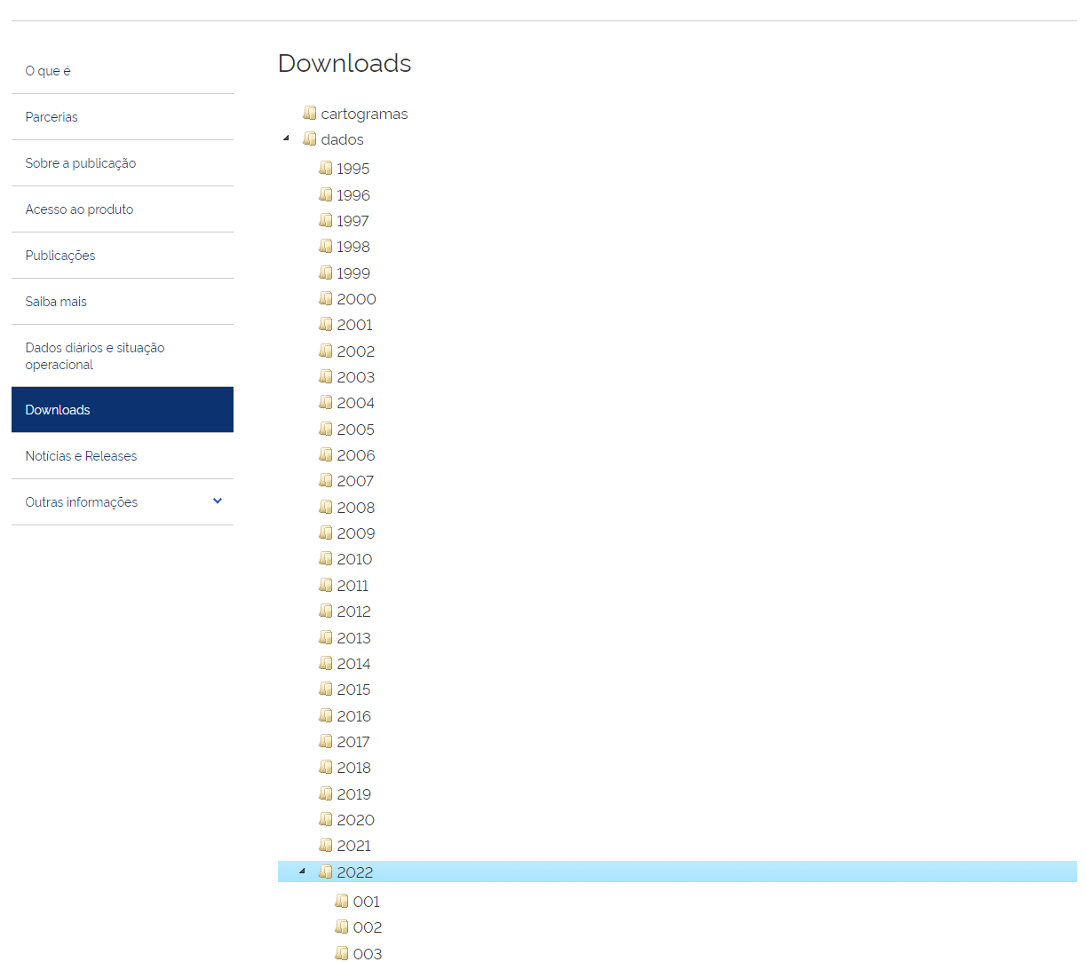 folder, and then organised by year and day of the year. For example, for observations from November 1st, 2022 (or 2022-11-01 - always use the ISO8601 date format when working and/or writing scientifically). The corresponding day of the year is 305, so we navigate to ther folder /dados/2022/305